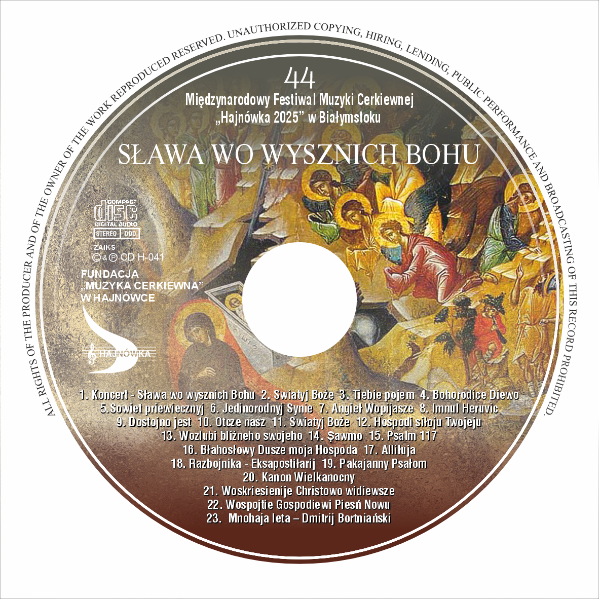 „KOLĘDY PRAWOSŁAWNE”Kolędy wykonane w czasie Międzynarodowego Festiwalu Muzyki Cerkiewnej – HajnówkaCena CD: 40 PLN |